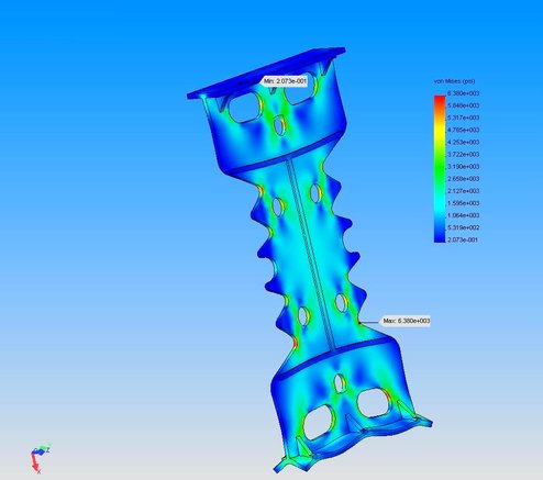 To clearly visualise the advantages of having a high density tie, take a look at the stress distribution in this 3D model of one of our ties after it has been put under a 50lbs load along its axis
